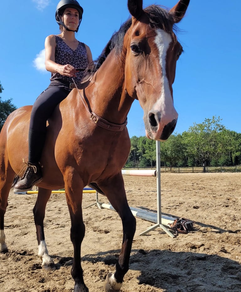 « Installé en deux secondes, il ne gêne pas du tout et rassure vraiment. J’ai déjà évité une frayeur après un long de mon Didou sur un oxer… Je ne monte plus sans. »
